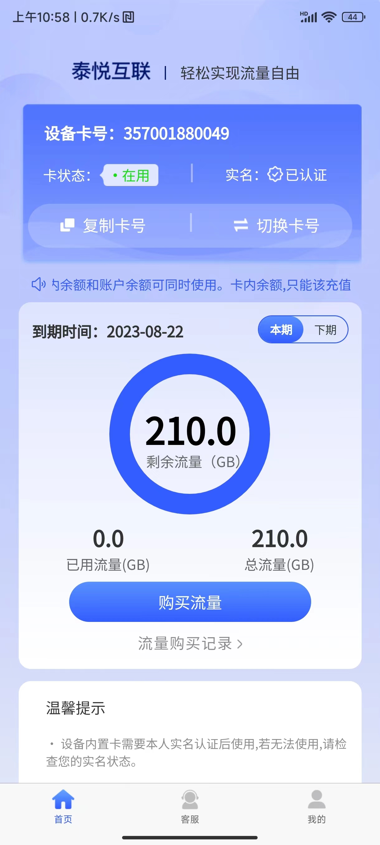 泰悦互联,您的流量卡便捷利用专家!我们的APP致力于为用户提供便捷的流量卡使用体验,通过绑卡充值等一系列服务,让您轻松体验多样化的流量产品,从而选择最适合您的产品。不再为复杂的流量卡使用而犯愁,泰悦互联将为您打开流量畅通的大门,让您随心所欲地畅享网络世界,不再为流量问题而烦恼。